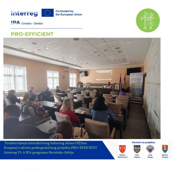 Danas je u Opštini Krupanj predstavljen Interaktivni Solarni Atlas, savremeni digitalni alat namenjen proceni solarnih potencijala na teritoriji opštine. Ova aktivnost realizovana je u okviru prekograničnog projekta INTERREG IPA IV Hrvatska–Srbija „PRO EFFICIENT“, koji se kofinansira sredstvima Evropske unije.