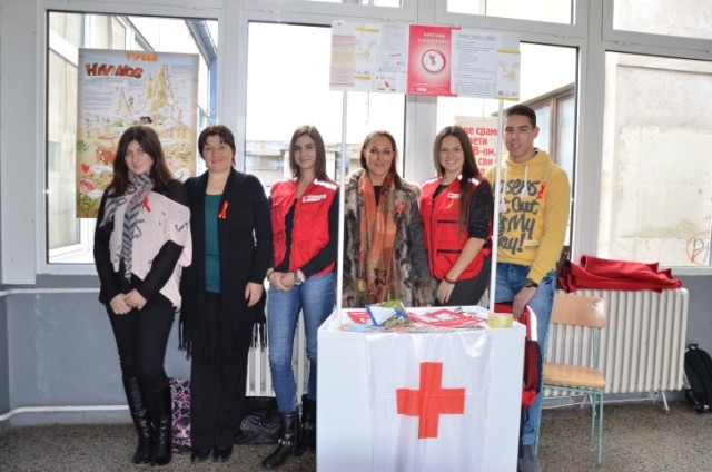 У холу Средње школе био постављен штанд где су волонтери Црвеног крста делили флајере.