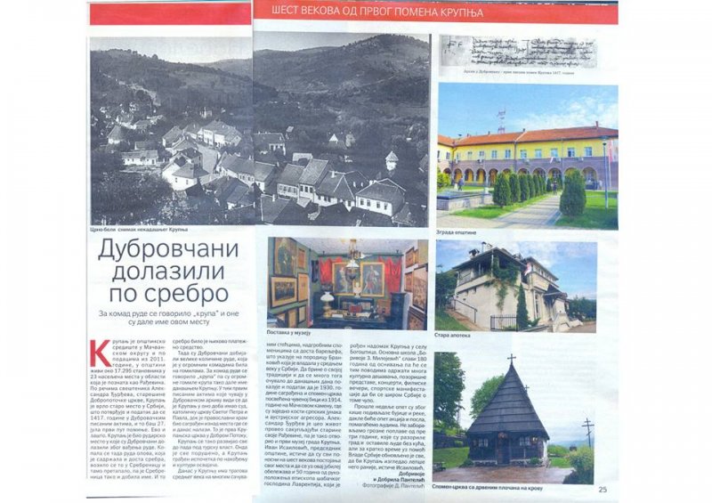 У магазину (недељни додатак) "Политика" изашао је текст о 600.година од првог писаног помена Крупња. У прилогу текста можете видети оргинални текст који је објављен у напред поменутом магазину.
