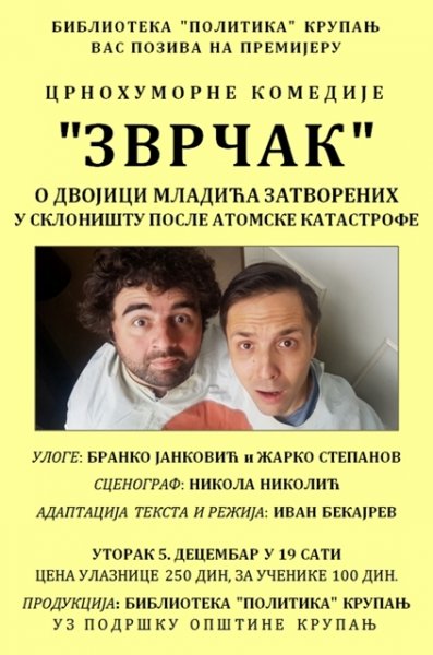У уторак 5.децембра 2017.године са почетком у 19 часова биће одржана премијера позоришне представе "Цврчак" у продукцији Библиотеке "Политика", а уз подршку Општине Крупањ. Цена улазнице 250,00 динара, а за ученике 100,00 динара.