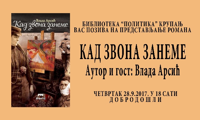 У четвртак 28.09.2017. године у библиотеци „Политика“ нашим суграђанима представљен је роман „Кад звона занеме“ аутора Владе Арсића.