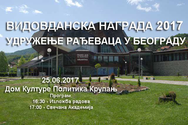 ВИДОВДАНСКА НАГРДА 2017-УДРУЖЕЊЕ РАЂЕВАЦА У БЕОГРАДУ