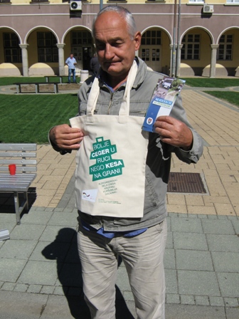 Oko 90 posto plastičnih kesa završi odmah u smeću, a u proseku jedna kesa se koristi oko 25 minuta. Cilj akcije je da se promoviše upotreba platnenih cegera, umesto plastičnih kesa, čime se direktno smanjuje količina otpada.Građanima i građankama su deljeni i flajeri sa kontaktima komunalnog inspektora i savetnika za zaštitu životne sredine u slučaju da građani i građanke žele da znaju gde da odlože svoj otpad, kome treba da prijave nesavesno ponašanje prema životnoj sredini, kako pravilno da odlože PET ambalažu.